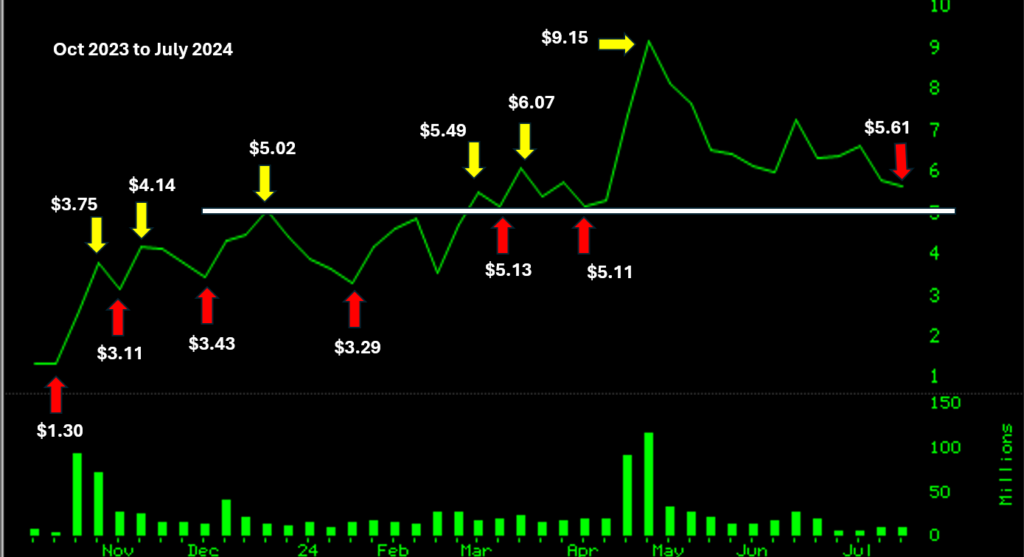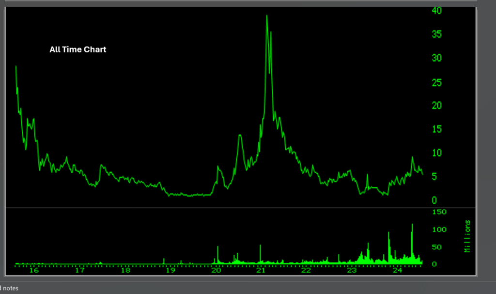 The chart above offers plenty of clues. The price and volume action from October 2023 to now seem to bring enough buying at the right time. There are going to be challenges no matter what. If it were so easy everyone would be doing this. The support at around the $5 price could be tested.