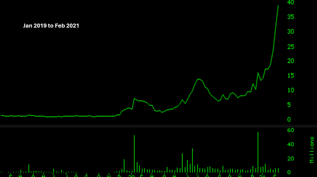 Without paying attention to the name of the company behind a stock, can anything be concluded by just looking at its chart? Yes, everything can be concluded by just looking at a chart and without knowing what the company does to earn its income. Though with a name like ImmunityBio it is plain to see what its business is – clearly biotechnology. And the ticker symbol IBRX with an Rx, also indicates its line of business.
