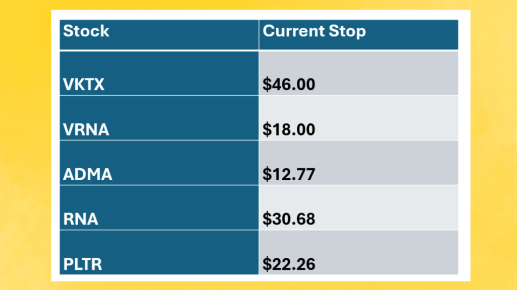 Most will say that there is no way things can be so simple. Maybe. Maybe not. But if one cannot make reasonable returns with considerable ease, why would one even think of being in stocks in a challenging environment? If the market is planning on offering rewards, it would start by letting these stocks stay above the stops listed. Moreover, one or more of these stocks should be making new highs to reflect the market’s strength. Will any of these stocks show us the way?